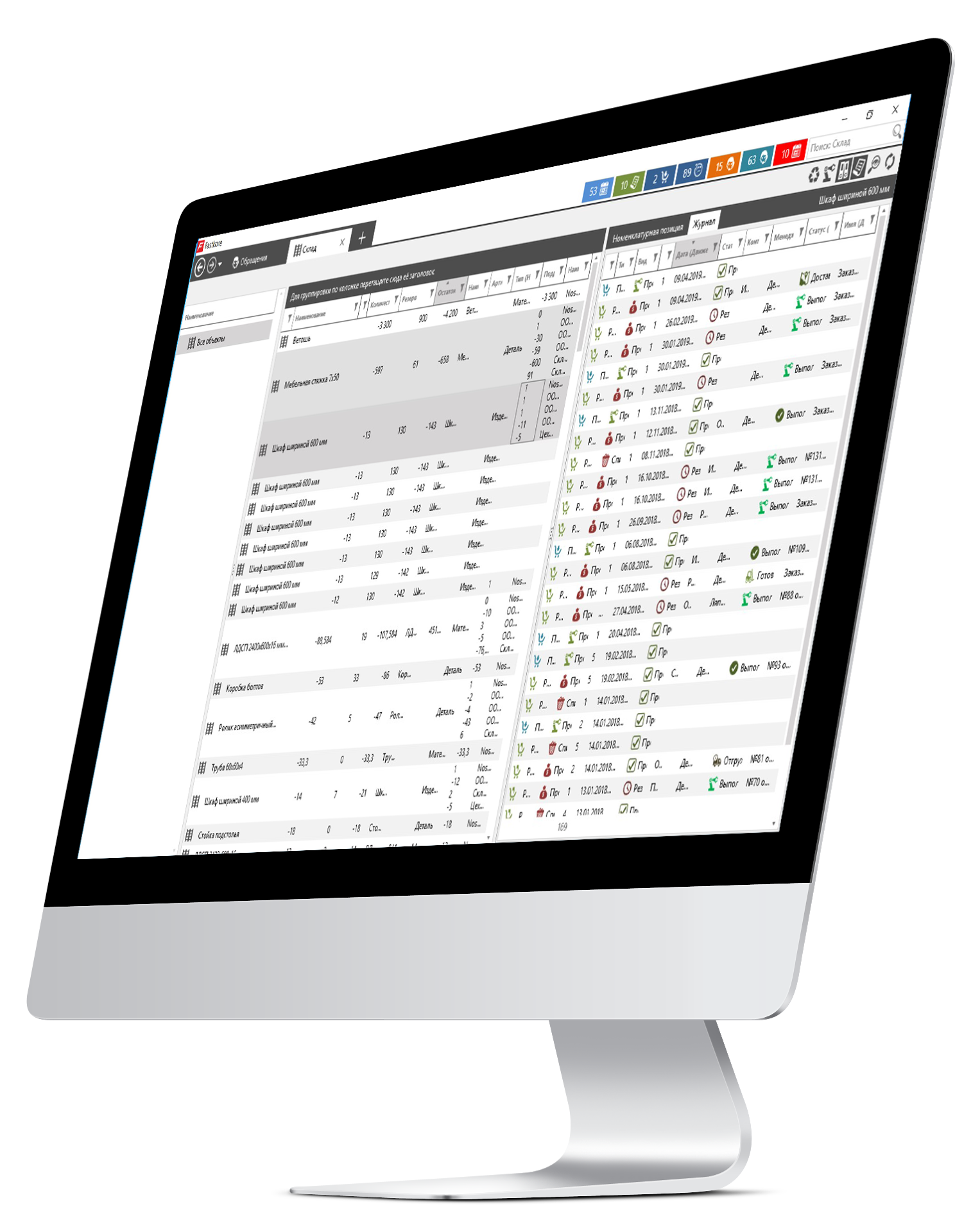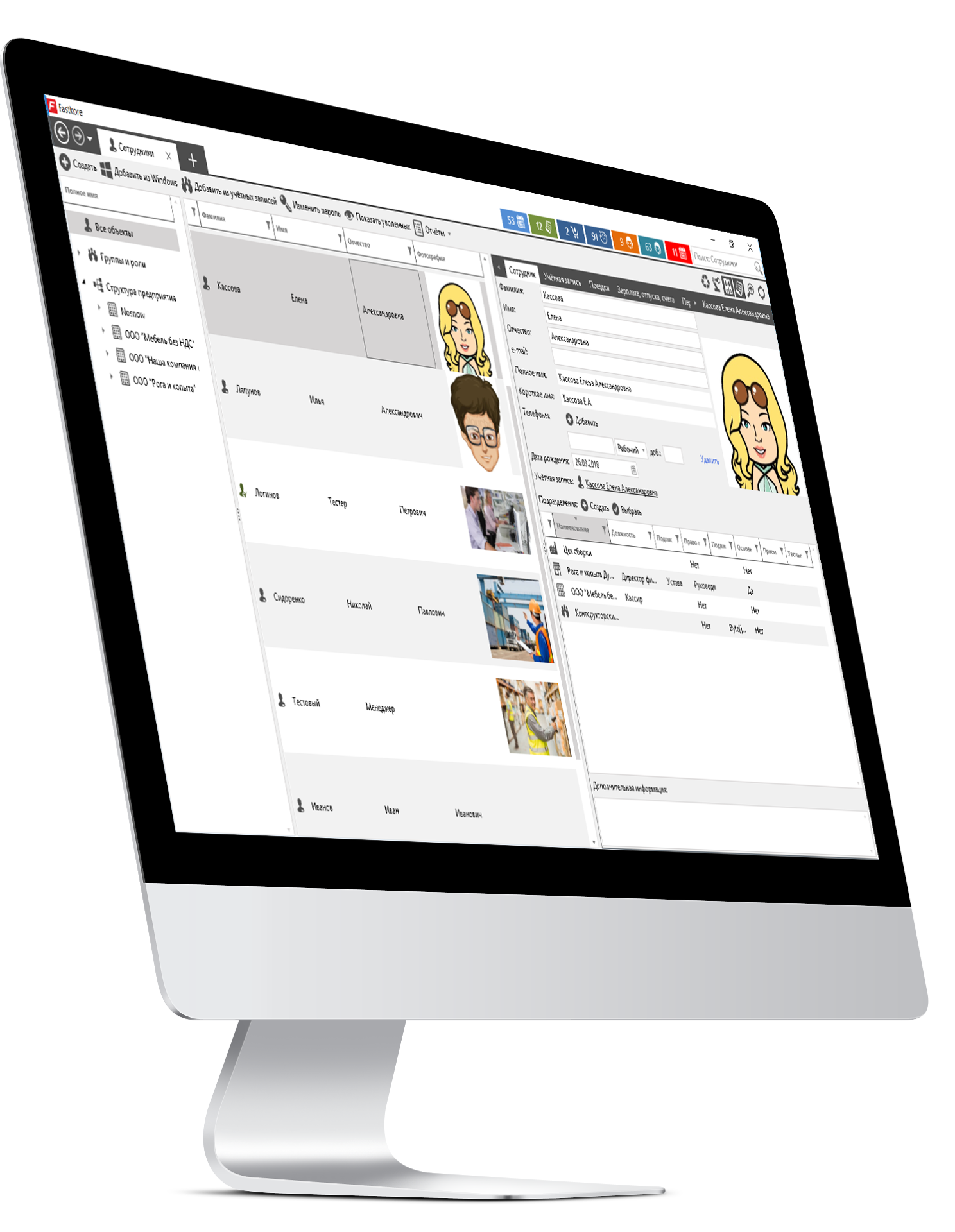 Вся информация находится в единой базе данных, предоставляя всем пользователям одновременный, разграниченный по правам доступ, позволяя получать актуальную информацию в режиме реального времени о происходящем в офисе, на производстве, складах и в других подразделениях.