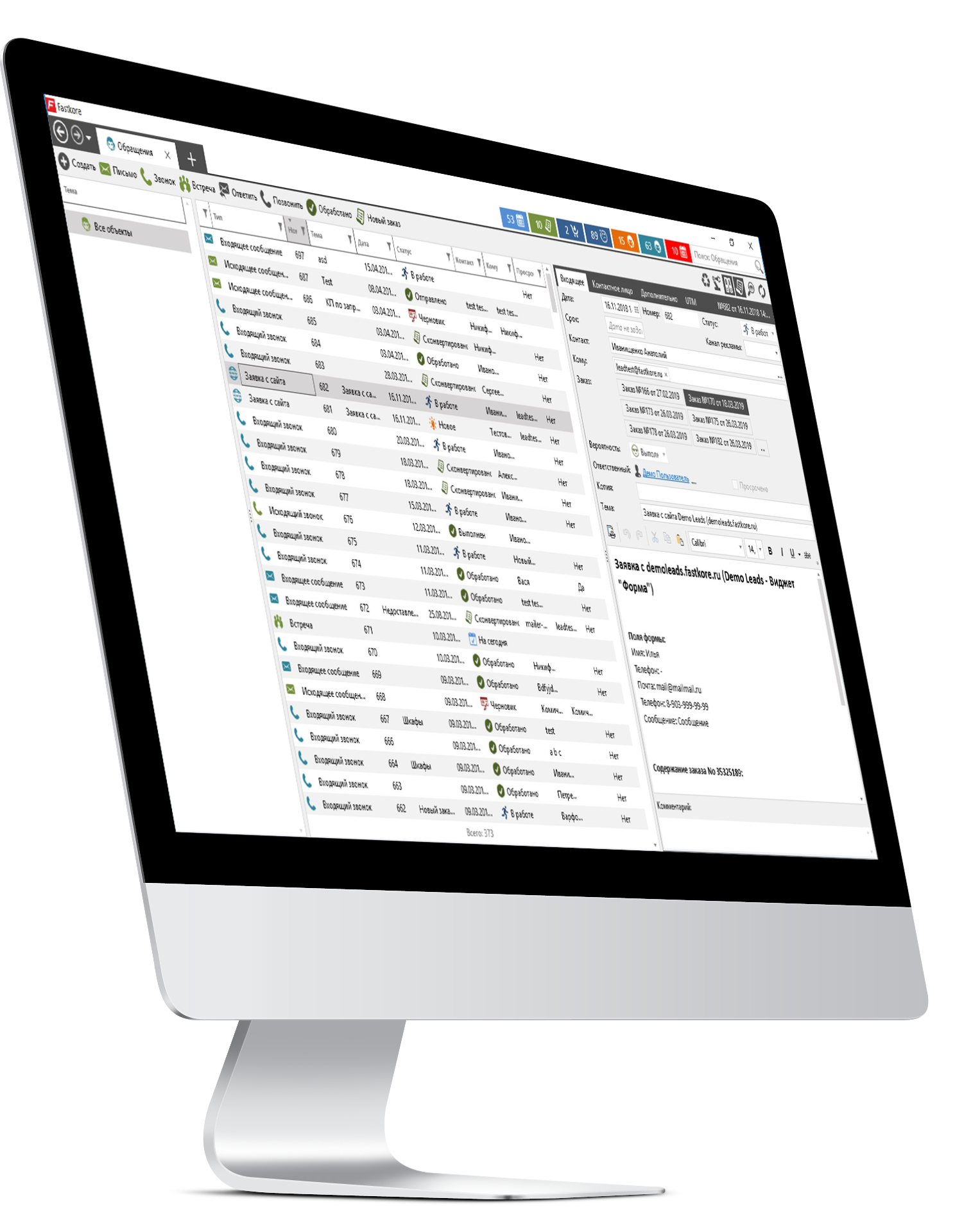 Заявки с сайтов, обращения по электронной почте приходят автоматически в систему 24 часа в сутки.